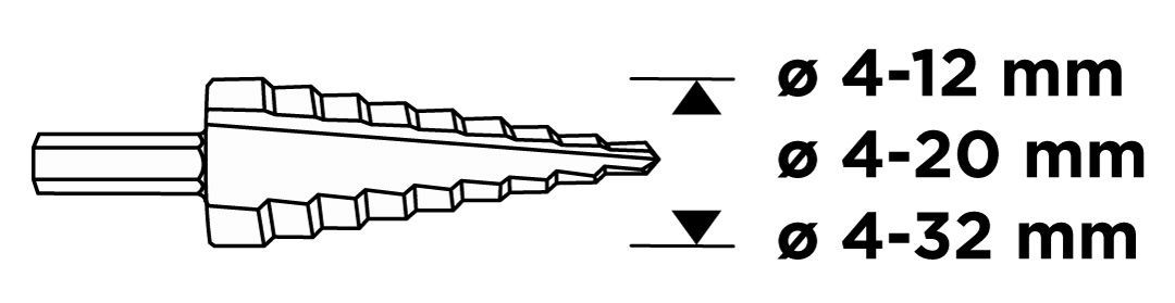 Свердло ступінчасте GRAPHITE TiN, 4x12/20/32мм, набір 3шт, 0.22кг