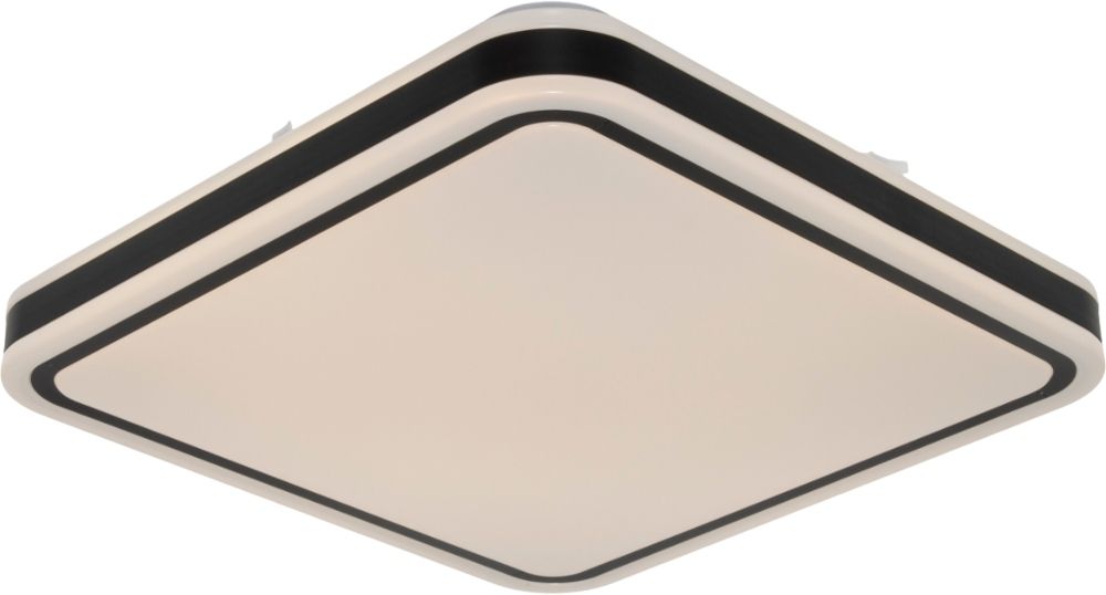 Світильник накладний OSRAM CEILING NOIR Square 430 мм має квадратну форму розміром 43×43 см. Потужність становить 48 Вт, а колір світіння — нейтральний 4000 K. Світловий потік досягає 5280 лм при куті розсіювання 120°. Основу виконано з металу чорного кольору, а плафон — з білого полімеру. Висота виробу 75 мм, вага 1,14 кг, термін служби 30 000 годин.