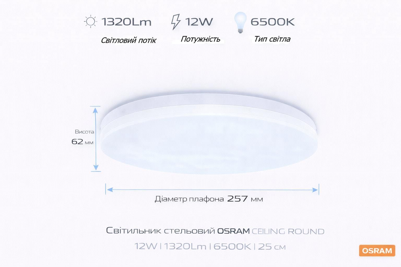 Світильник накладний OSRAM CEILING ROUND 12Вт 6500K 960Лм