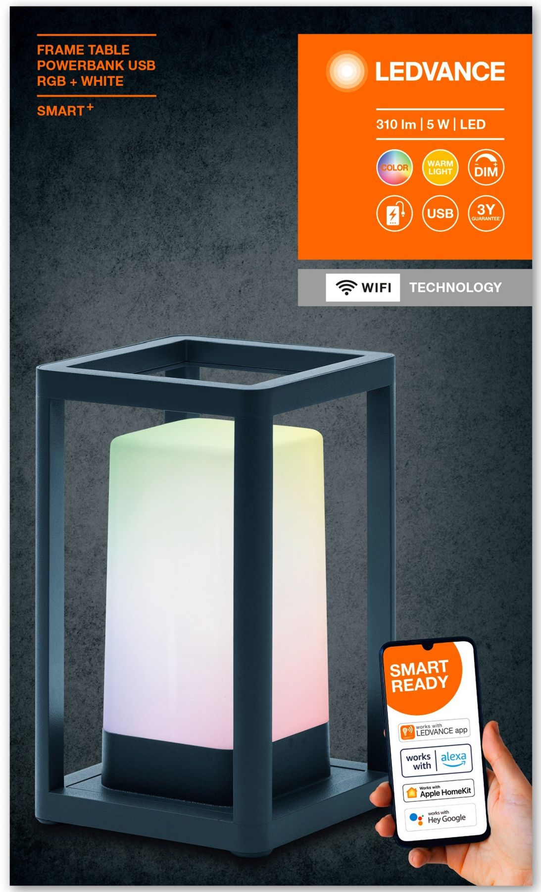 Світильник розумний LEDVANCE SMART WIFI OUTDOOR TABLEFRAME POWERBANK RGBW, 5W, USB, 270Lm, 5200 mAh,Wi-Fi, чорний