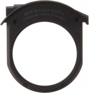 Canon Drop-in Clear Filter A — це прозорий світлофільтр, який встановлюється у спеціальний слот об'єктивів Canon RF із вбудованою системою drop-in фільтрів. Він захищає оптичні елементи об'єктива, не змінюючи зображення.