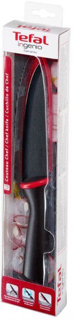 Кухонний ніж кухарський Tefal Ingenio Ceramic Black, довжина леза 16 см, кераміка, чохол