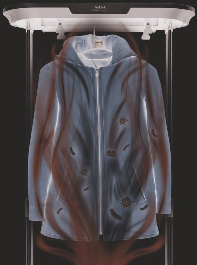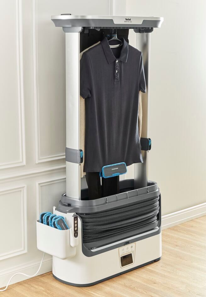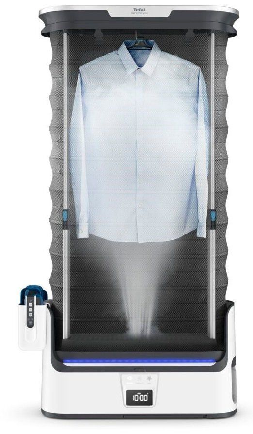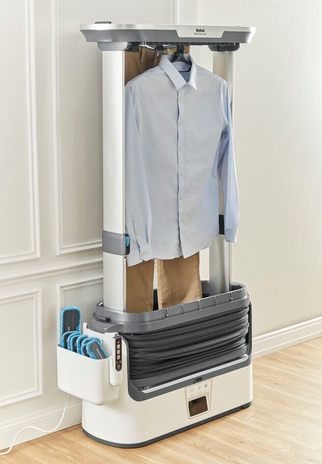 Автоматична парова шафа Tefal CARE FOR YOU використовує всю міць натурального пару для видалення складок, дезінфекції та сушки з автоматичним процесом, який спрощує догляд за одягом. Відкрийте для себе новий ігровий процес, який не потребує втручання користувача: просто вставте до 3 предметів для ефективного видалення складок всього за 10 хвилин. 40-хвилинний цикл дезінфекції вбиває до 99,99% вірусів, бактерій та мікробів *, зменшуючи при цьому запахи. Надійна сушка завершує ідеальний комплект побутової хімчистки.
