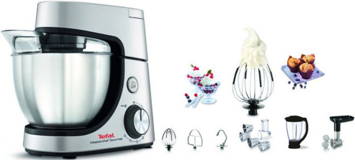 Чудова приготування випічки кожен день! Masterchef Gourmet допоможе вам легко приготувати домашню випічку, щоб порадувати вашу сім'ю. Завдяки комплектації з унікального запатентованого Flex Whisk, вінчика і гака для тіста, успіх завжди гарантований! Завдяки двигуну потужністю 1100 Вт і чаші об'ємом 4,6 л можна приготувати до 1,8 кг суміші для випічки, 10 яєчних білків або 800 г тіста для бріошів. Вийдіть за межі звичайних рецептів, завдяки доступним 7 додатковим насадкам.