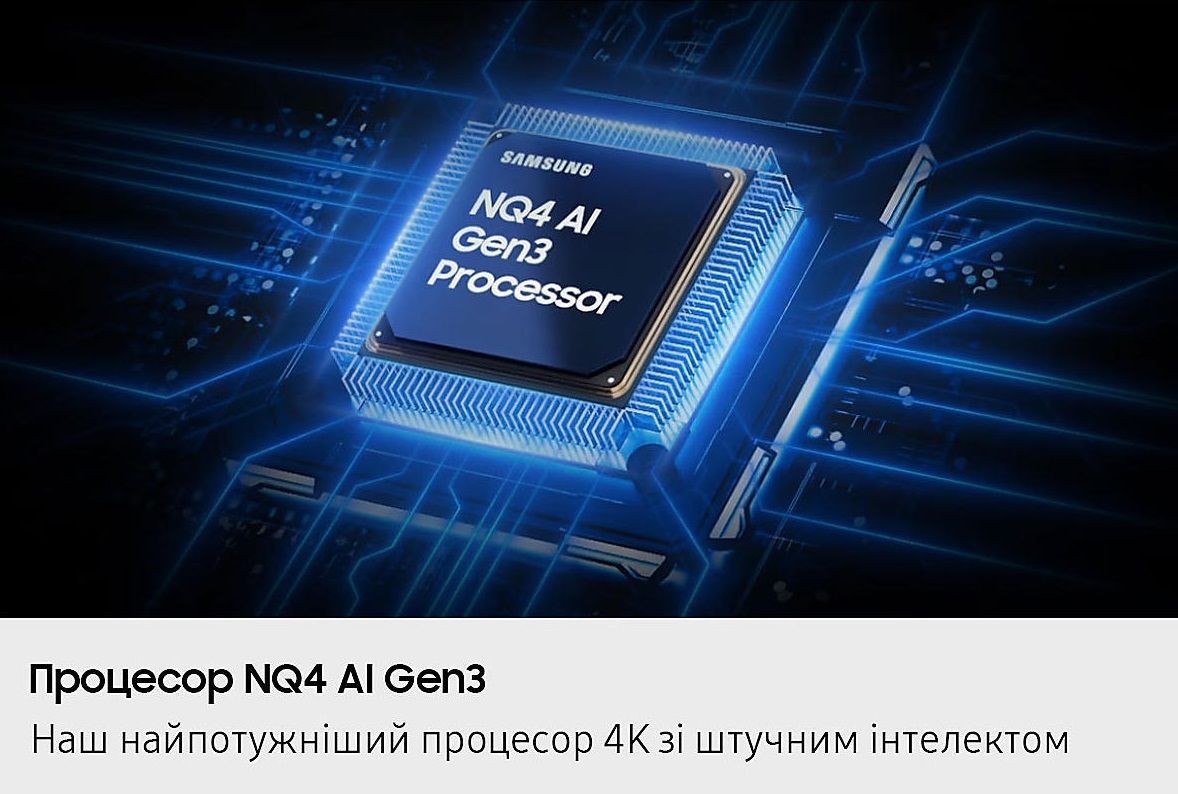 Особливості:автоматичне вимкнення, Аналоговий тюнер, Технологія Anynet +, HDR 10+, HGIG Mode, Web Browser, Bixby, Dolby Atmos, APPLE AIRPLAY, Motion Xcelerator, CI+, FreeSync Premium Pro, Q-Symphony, OTS Lite, ALLM (режим автоматичної низької затримки), Multi-view, електронний телегід, Ambient Mode+, 360 Audio, IP Control, Real Depth Enhancer, Active Voice Amplifier Pro, Daily+, підтримка TV Key, Game Motion Plus, VRR, HDR+, підтримка розширеної функції запису телепередач (PVR), Adaptive Sound Pro, Dynamic Black EQ, MiniMap Zoom, Surround Sound, Eco Sensor, Auto HDR Remastering Pro, AI Motion Enhancer Pro, AI масштабування 4K Pro, ультраширокий кут огляду, Підтримка людей із вадами зору, Голосовий гід, Підтримка людей із вадами слуху, Підтримка рухової недостатності