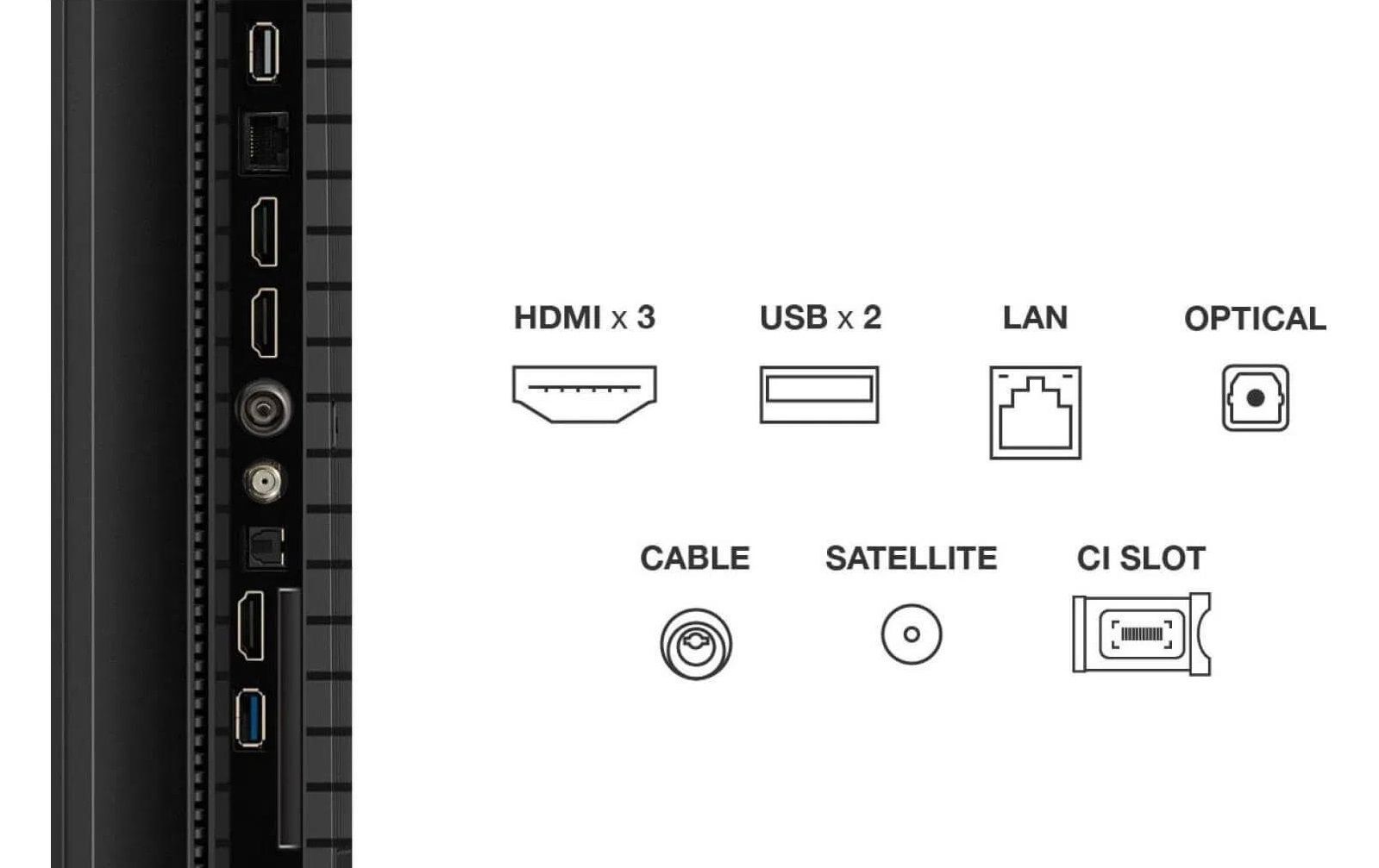 Входи:HDMI, USB, Cлот розширення (CI Slot)