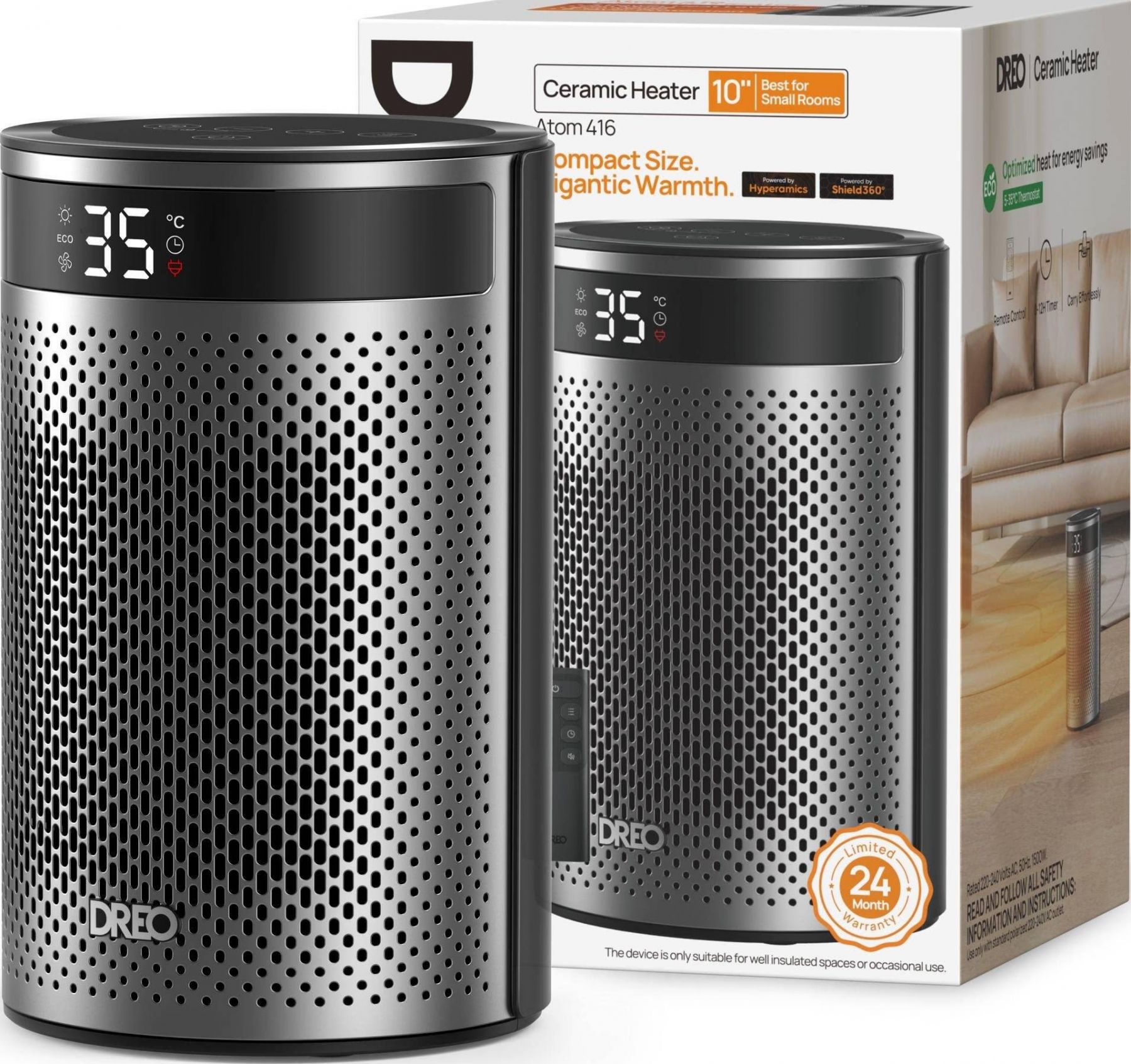 Тепловентилятор Dreo DR-HSH030 — це компактний керамічний обігрівач потужністю 1500 Вт, призначений для швидкого нагріву приміщень до 20 м². Завдяки електронному керуванню, LED-дисплею та пульту дистанційного управління користувач може легко налаштовувати комфортну температуру. Безщітковий двигун забезпечує тиху роботу, а системи захисту від перегріву й перекидання підвищують безпеку. Модель відзначається стильним дизайном і стабільним нагрівом протягом усього дня.