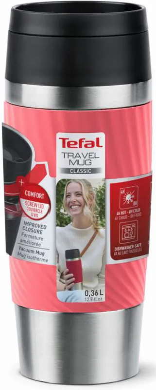 Термочашка Tefal Travel Mug Classic Twist, 0.36л, нержавіюча сталь, кораловий
