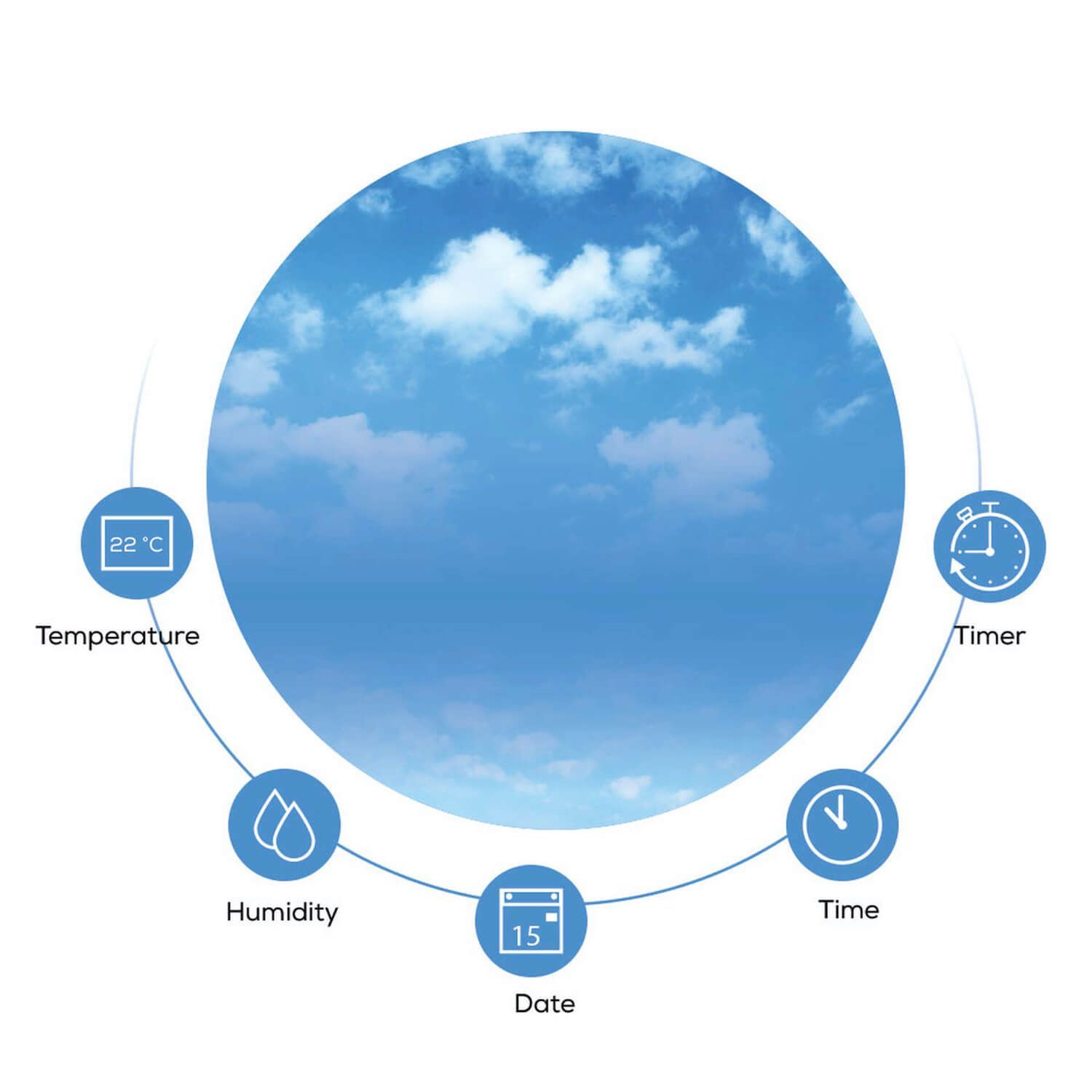 Термогігрометр контролює мікроклімат в приміщенні. Відображає індикацію температури, відносну вологість повітря, дату і час. Функція таймера для короткострокових налаштувань. Термогігрометр можна повісити на стіну або поставити на столі.