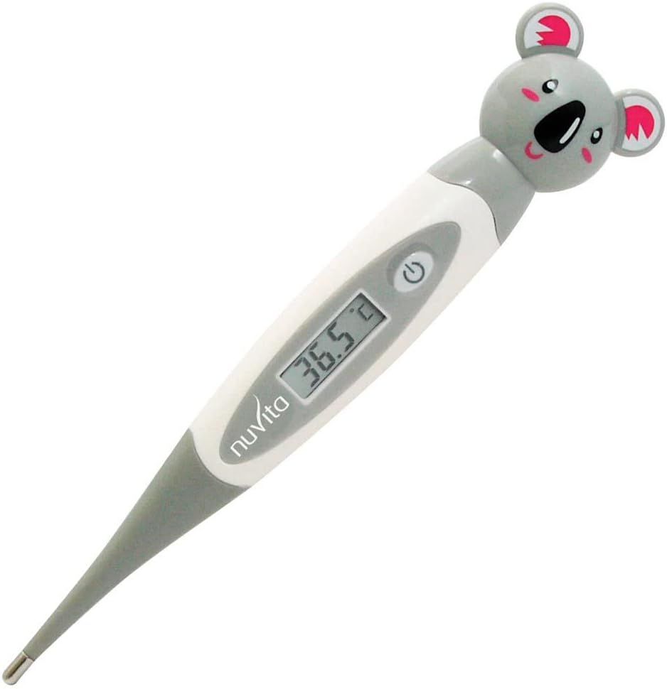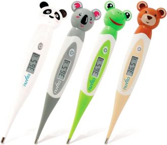 Дитячий цифровий термометр Nuvita з гнучким наконечником безпечний, м’який, тому його можна використовувати різними способами. Підходить для вимірювання температури в ротовій порожнині, під пахвою або ректально. Про закінчення вимірювання повідомить звуковий сигнал, після чого термометр автоматично вимкнеться. Термометр автоматично відображає останню виміряну температуру та має практичну прозору пластикову кришку, яка захищає кінчик термометра. Цей продукт не є лабораторним вимірювальним приладом. Він призначений для домашнього використання, а виміряні значення є інформативними. В асортименті 4 різні милі тваринки на вибір: панда, коала, жаба, ведмідь.