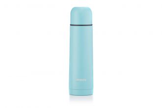 Термос із нержавіючої сталі (18/10) блакитного кольору заввишки 24,7 см об’ємом 500 мл. Здатний зберігати температуру гарячого напою протягом 12 годин, а холодного – протягом 24 годин. Не можна мити в посудомийній машині.