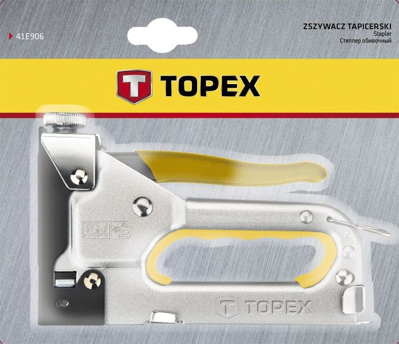 Степлер TOPEX працює зі скобами типу J, розміром від 6 до 14 мм. Металевий корпус гарантує міцність інструменту. Прекрасно підійде для виконання кріпильно-оббивних і оздоблювальних робіт, кріплення плівки або шкіри. Завдяки регулюванню сили забивання скоб, степлер може використовуватися для роботи як з твердими, так і з м'якими матеріалами. Точно забиває скоби, не деформуючи їх, в тому числі при роботі з твердими матеріалами. Ергономічна і міцна металева ручка з пластмасовим покриттям для комфортної роботи. Бренд TOPEX призначений для домашніх майстрів.