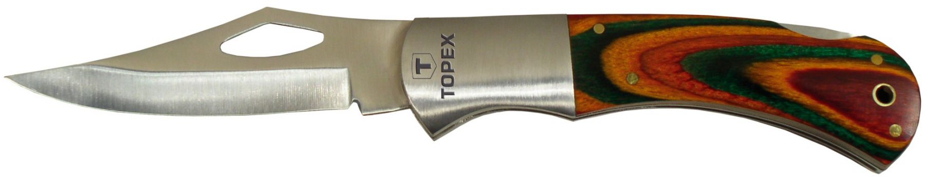 Ніж складаний TOPEX, фіксатор, лезо 75 мм, тримач металевий та дерев'яні накладки, 170 мм
