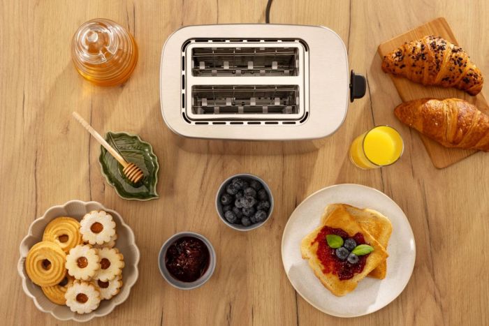 Функції:Розморожування, автовимкнення, Автоматичне підняття тостів, Двостороннє обсмажування, функція підігріву, Підсвічування ручки управління, Пластикові ніжки, Корпус залишається прохолодним під час приготування, Ступені підрум'янення, Механічне регулювання ступеня обсмаження, Білий індикатор роботи, Кнопка для викиду тостів