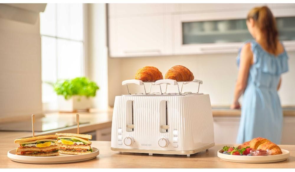 Тостер Sencor 1860Вт, підігрів, розморожування, 4 слоти, пластик, білий