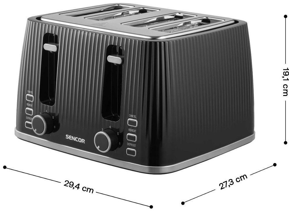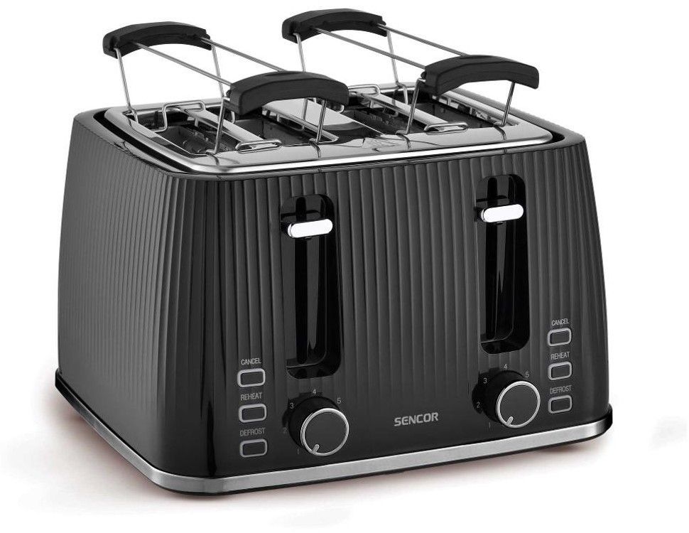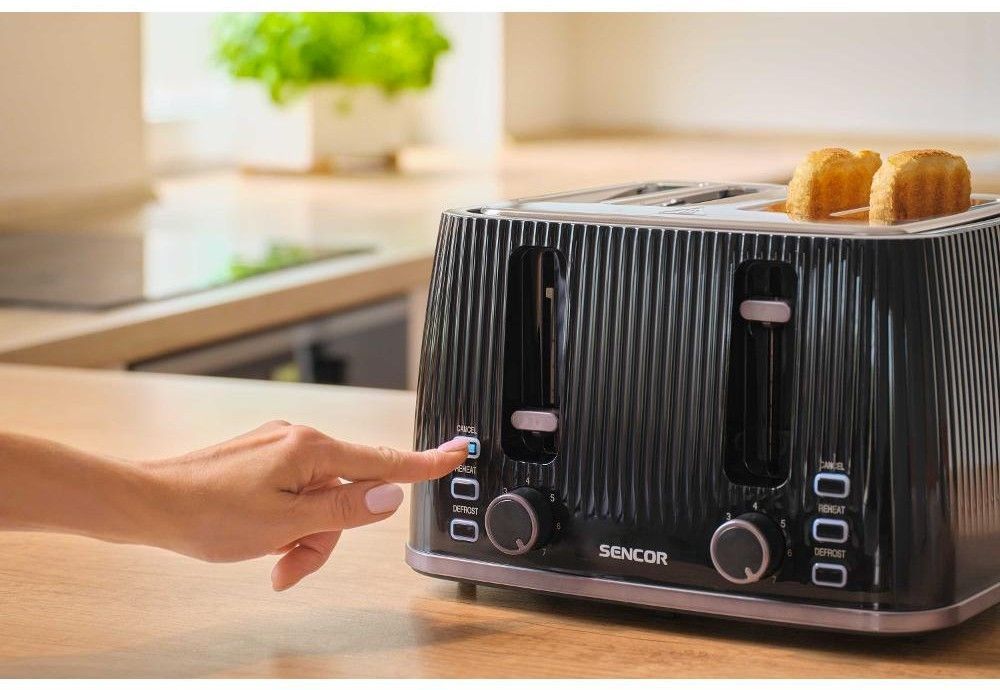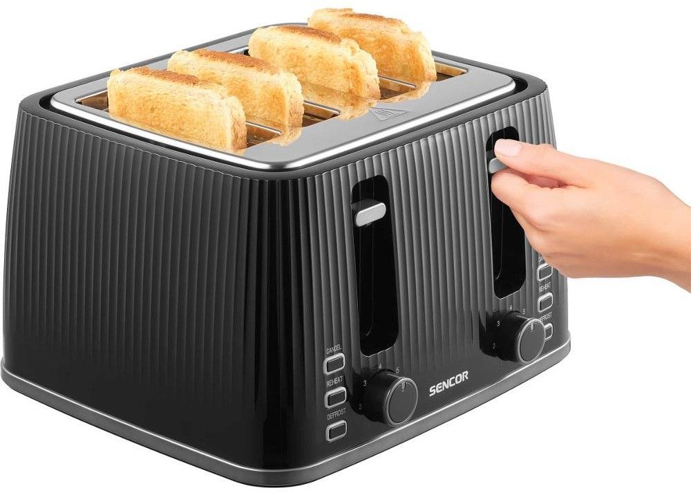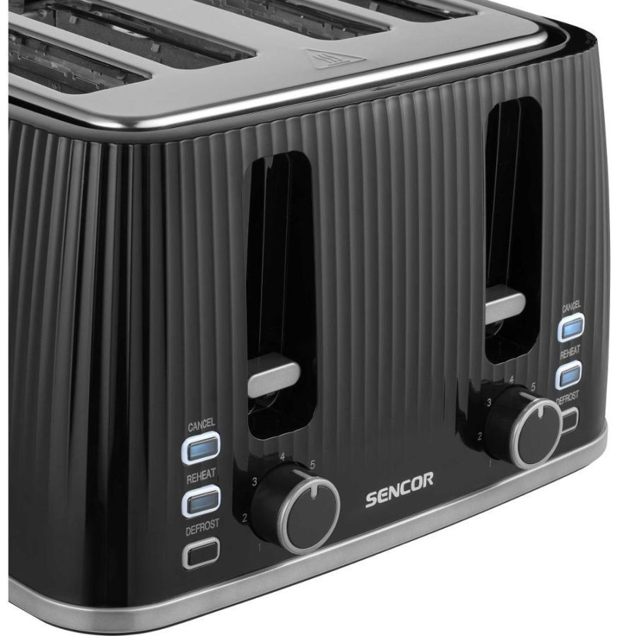 Тостер Sencor 1860Вт, підігрів, розморожування, 4 слоти, пластик, чорний