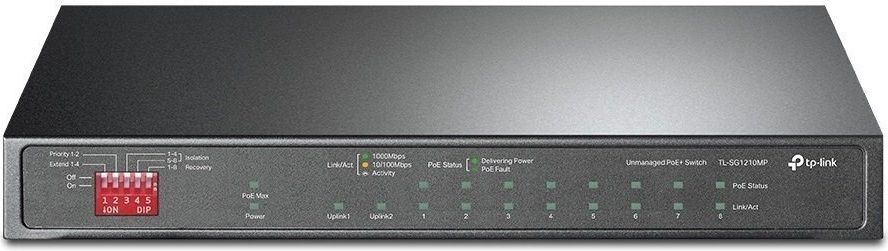 TL-SG1210MP - 10-портовий гігабітний некерований комутатор з 8 портами PoE+. TL-SG1210MP повністю сумісний з IP-камерами, точками доступу, IP-телефонами, комп'ютерами, принтерами і не тільки.