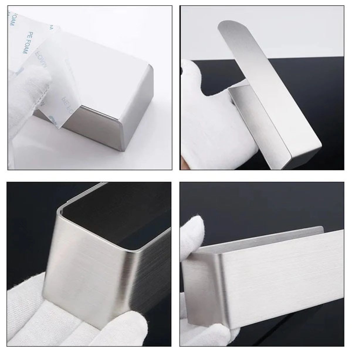 Настінний тримач для рушників NAVIN сучасне стильне рішення для вашої кухні або ванної кімнати. Виготовлений з високоякісної нержавіючої сталі, що забезпечує довговічність та надійність. Він легко може бути встановлений на будь-якій плоскій поверхні без додаткових інструментів, за допомогою двостороннього скотчу, який іде в комплекті. Гармонійно впишеться в будь-який дизайн, розв'яже проблему зі зберіганням рушників і підкреслить естетичну складову інтер'єру. Просте використання та догляді: просто протріть вологою тканиною та висушіть.