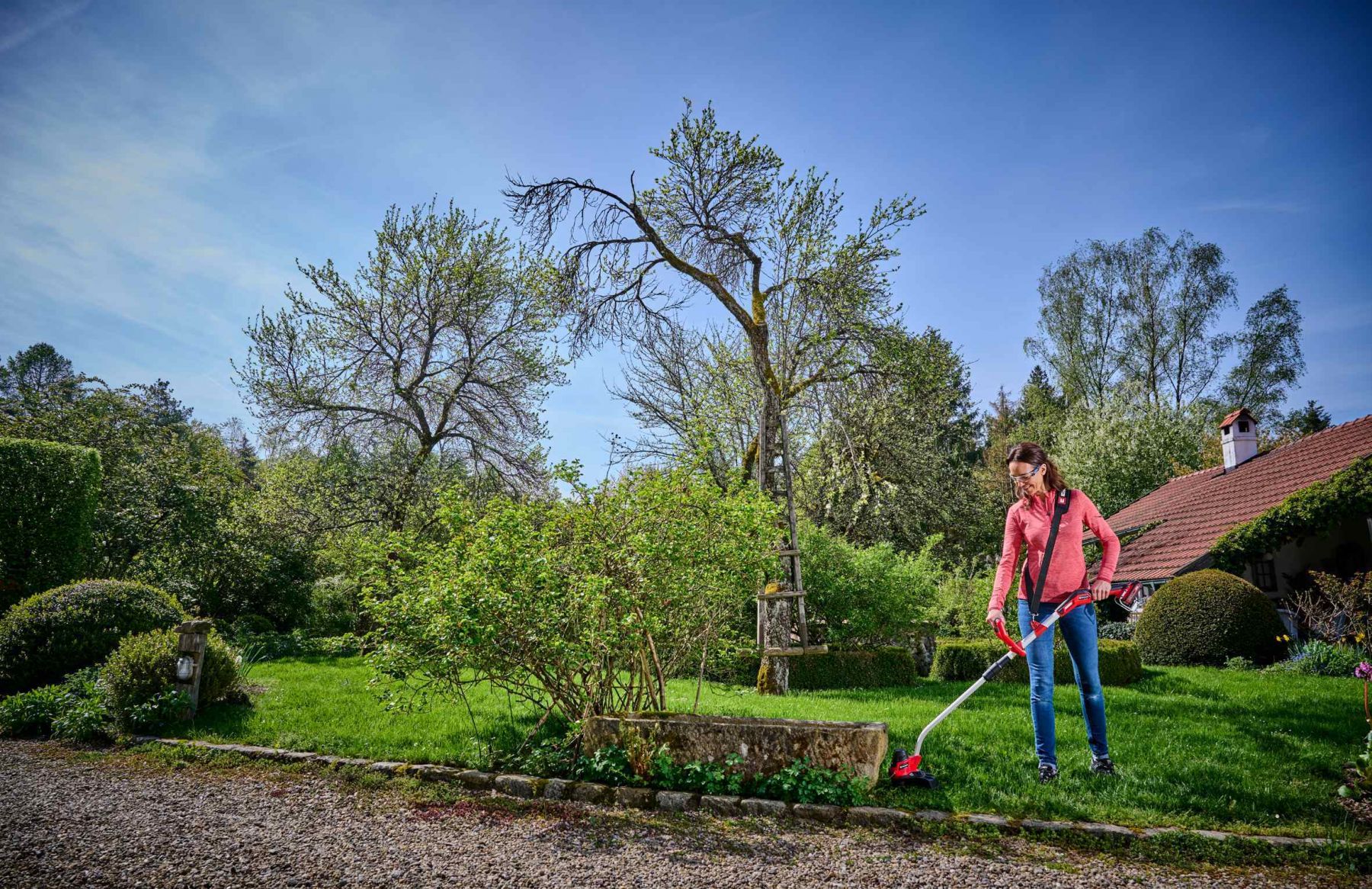 Акумуляторний тример Einhell GE-CT 18/33 Li E - Solo призначений для догляду за краями газону, вузькими ділянками та межами. Оснащений котушкою з волосінню 8 м (Ø 2 мм), автоматичною подачею та двигуном з обертами до 7000 об/хв. Має легку алюмінієву штангу, додаткову ручку, ремінь для перенесення й систему Flowerguard для захисту рослин. Працює у двох режимах швидкості, знімна штанга економить місце при зберіганні. Постачається без акумулятора та зарядного пристрою.