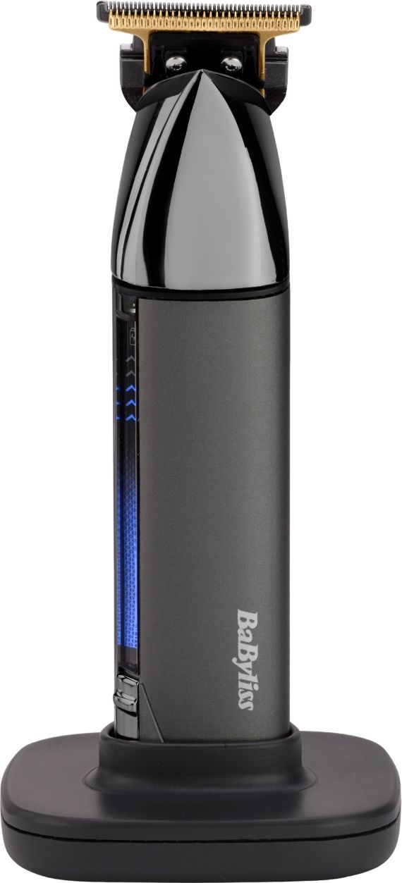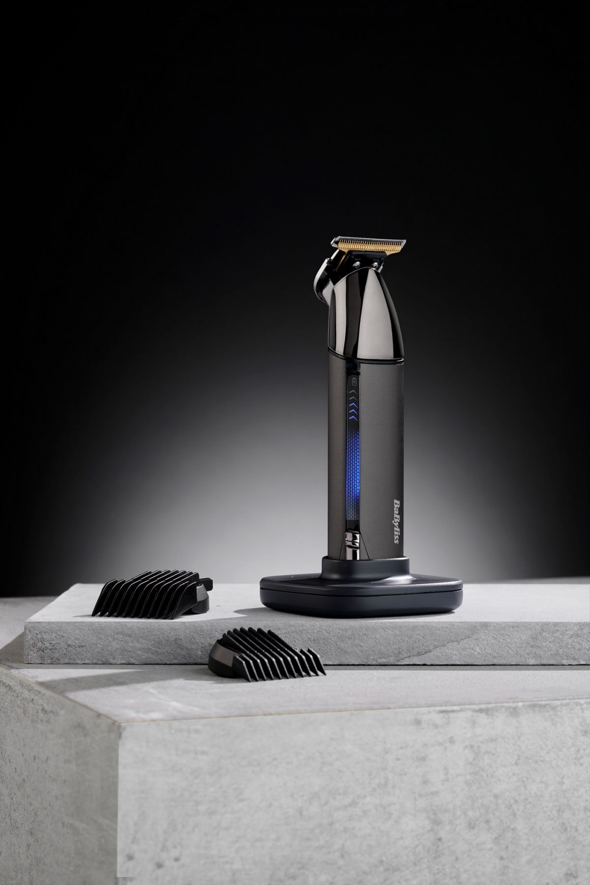 Тример Babyliss Super-X Metal Black Edition, для вусів та бороди, акум., насадок-2, кейс, підставка, сталь, чорно-сірий