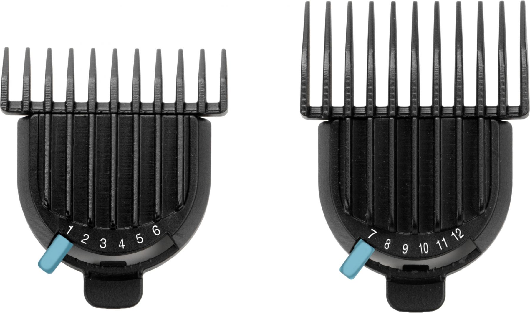 Тример Babyliss Super-X Metal Black Edition підходить для догляду за бородою та вусами, оснащений високоточними лезами з японської сталі. Працює від Li-Ion акумулятора до 300 хвилин, має 2 насадки (1–6 мм та 7–12 мм), зарядну підставку з USB та сумку для зберігання.