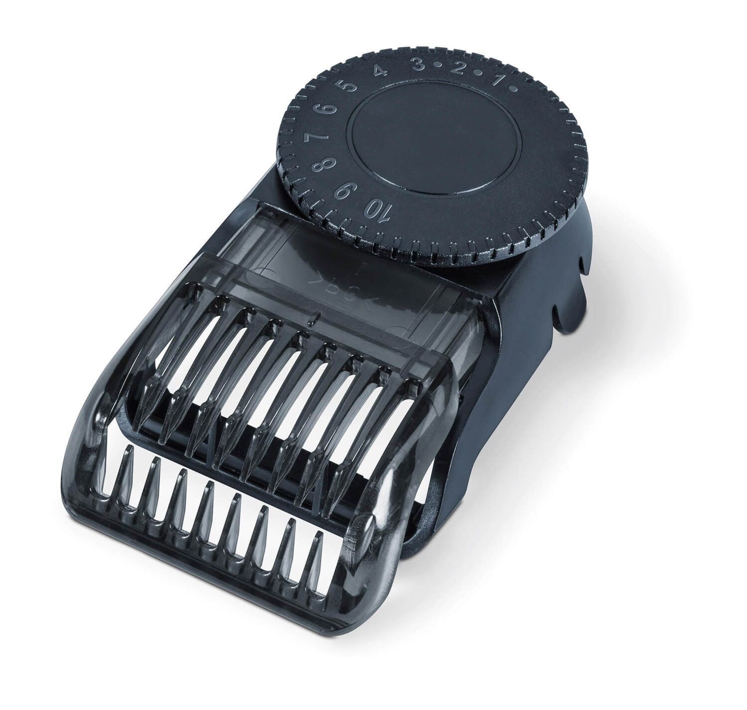 Тример для тіла Beurer HR 6000 — це універсальний прилад для видалення волосся. Гнучке лезо дає змогу застосовувати тример для всіх частин тіла, включно з обличчям. Комфортне використання завдяки високоякісній неіржавкій сталі, з якої зроблене двостороннє лезо. Поворотна насадка дає змогу підібрати 13 типів зрізання довжини, від 0,5 до 10 мм. Тример має стильний дизайн із хромованими вставками. Водостійку конструкцію — його можна використовувати для вологого стриження. Лезо бритви знімається, очищається під проточною водою.