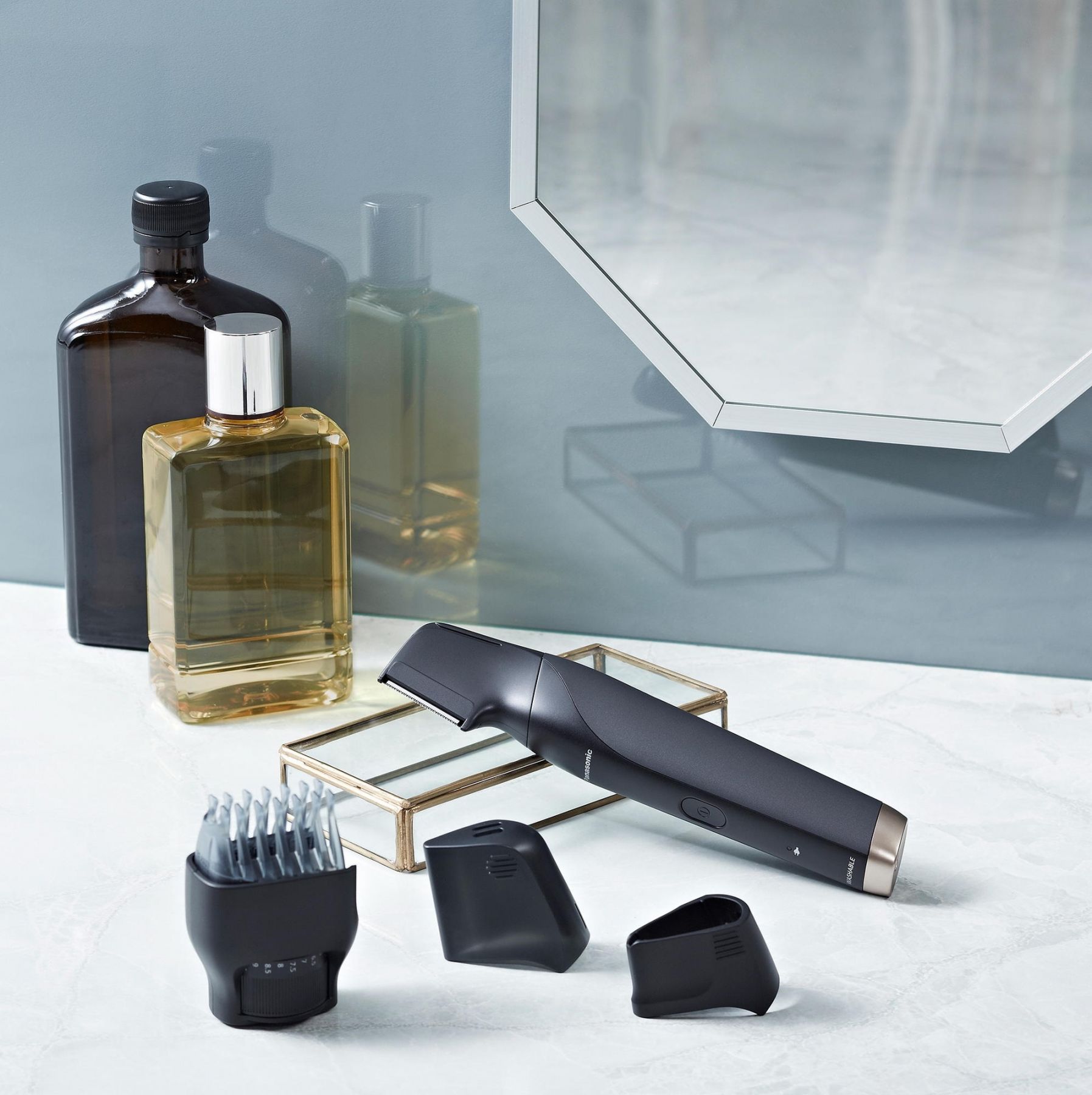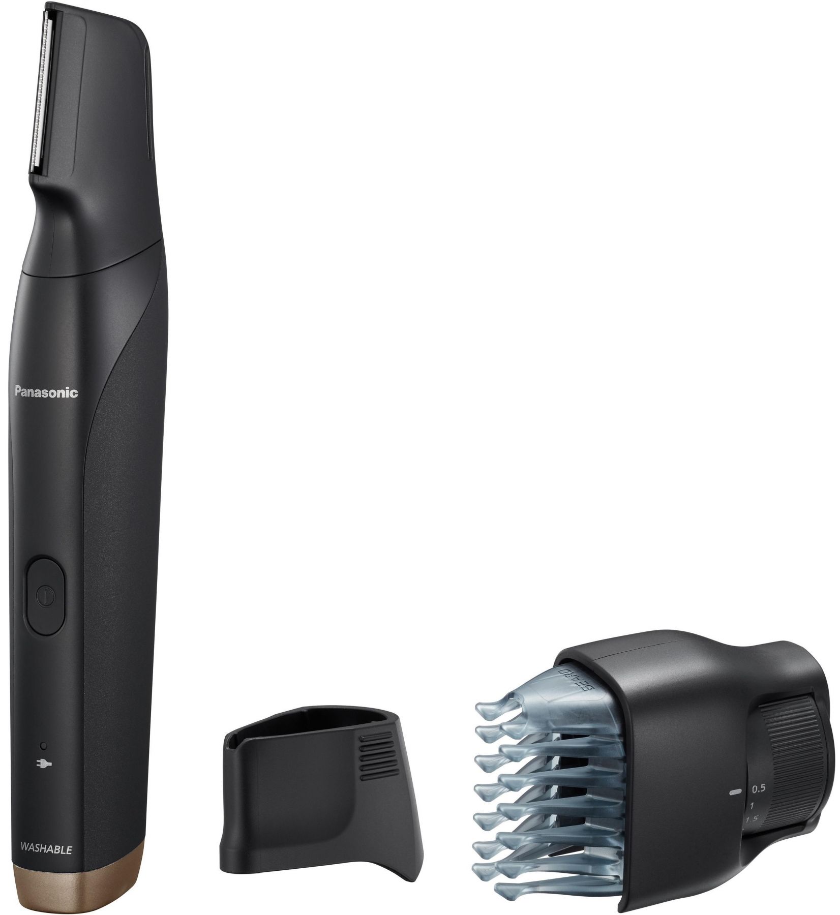 Тример Panasonic, для бороди, вусів, голови та тіла, мережа+акум., насадок-2, чохол, швидка зарядка, чорно-золотий