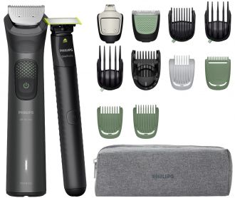 Комплектація:USB-кабель, дорожній футляр, щітка для очищення, металевий тример, тример для тіла, ручка OneBlade, лезо OneBlade, міні-тример для точного контуру, точний гребінець преміум-класу