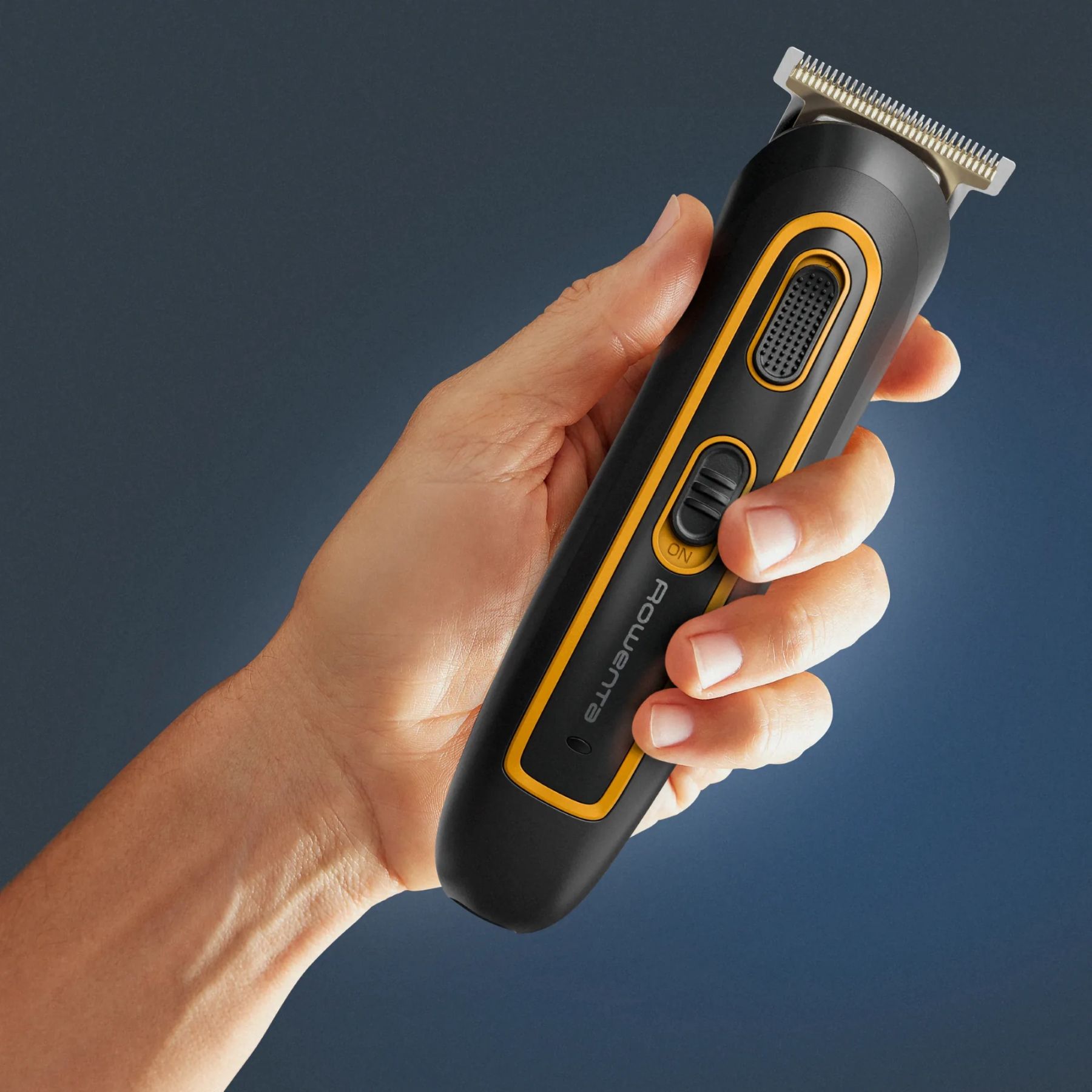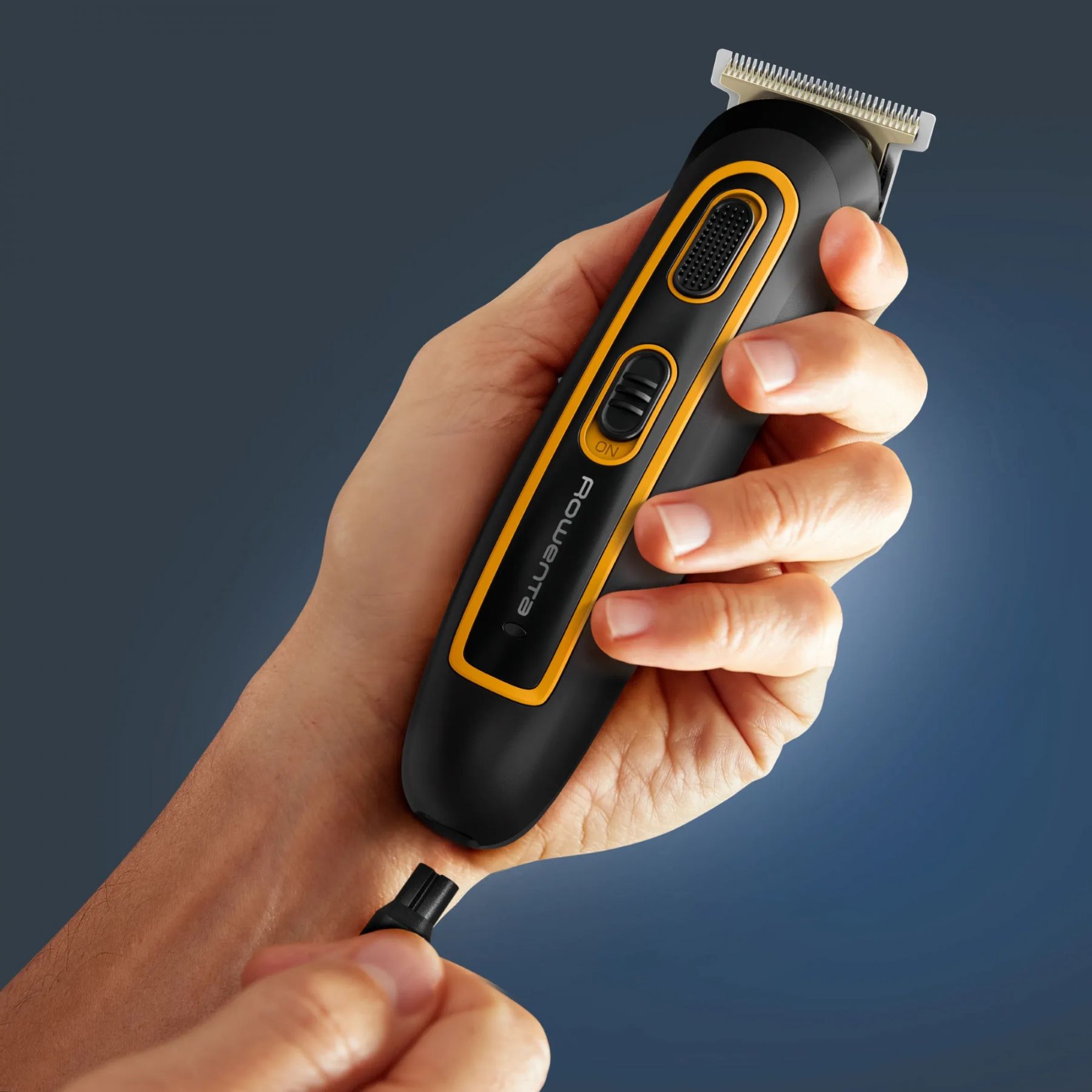 Тример Rowenta Sport Collection, для голови, носа, вух і тіла, мережа+акум., роторний мотор, насадок-8, чохол, титан.напил., чорно-жовтий