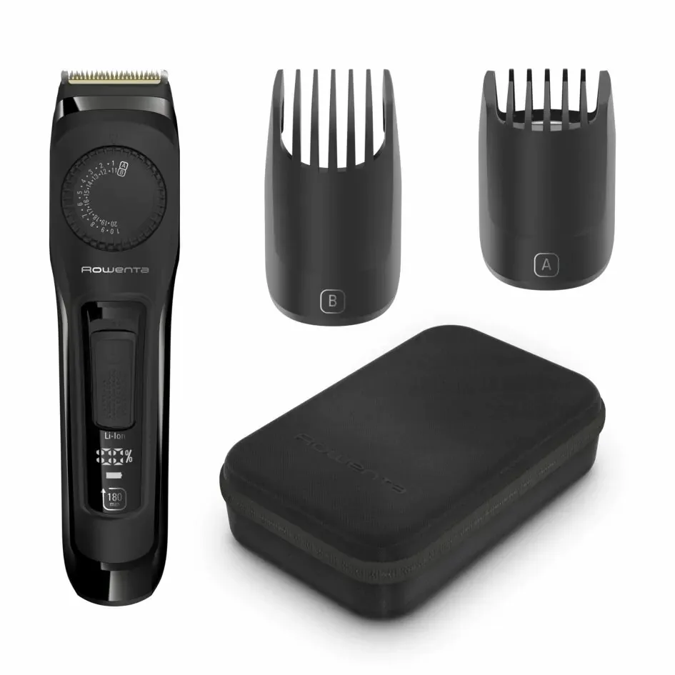 Тример для бороди Rowenta Virtuo забезпечує тривалу роботу та ідеальну стрижку за один раз, навіть для густого волосся на обличчі. Ідеально пристосований до бороди будь-якої довжини, ви з легкістю зможете створити свій стиль завдяки точному циферблату тримера, який пропонує 39 варіантів довжини стрижки. Леза з нержавіючої сталі з титановим покриттям гарантують оптимальну гостроту день за днем, а 180 хвилин автономної роботи та цифровий моніторинг заряду гарантують безперебійну та комфортну експлуатацію.