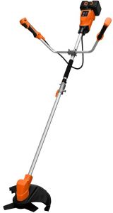Комплектація:захисний кожух, без акумулятора, зарядного пристрою, наплічний ремінь, штанга з редукторами, тример акумуляторний модель “TCGT-300/i20 BL”, права рукоятка, ліва рукоятка, металевий ріжучий ніж (3 лопаті), ріжуча головка з ліскою