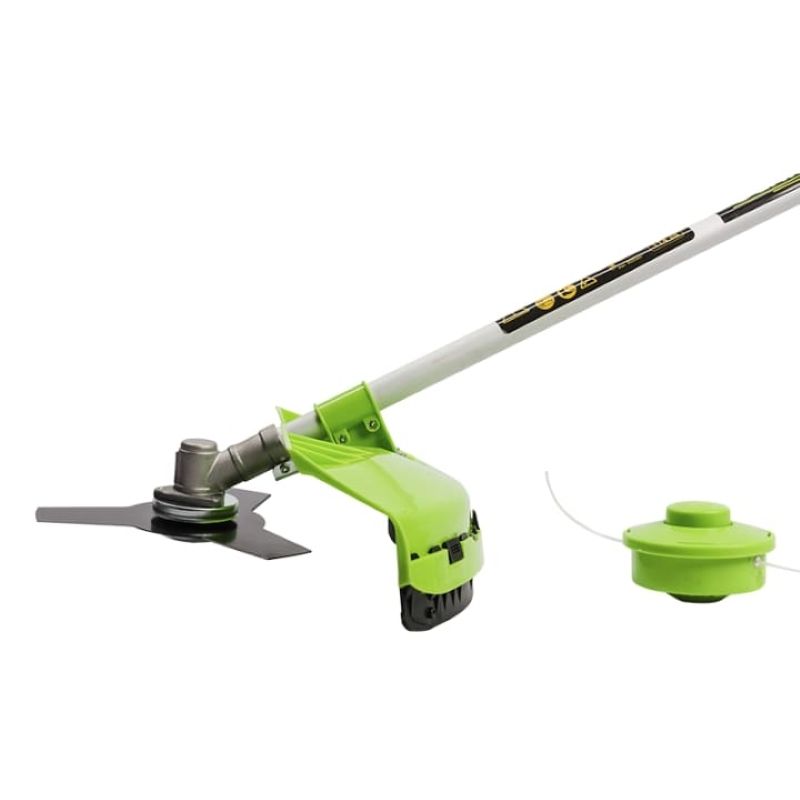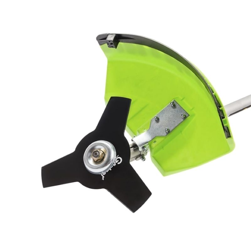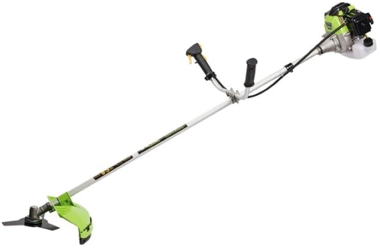 Комплектація:інструкція з експлуатації, Гарантійний талон, упаковка, наплічний ремінь, Штанга, Права частина рукоятки управління, Ліва частина рукоятки управління, Кріплення рукоятки управління (верхня частина кріплення, середня і нижня частини кріплення, 4 болта під торцевий ключ), Кріплення захисного кожуха, Ємність для паливної суміші, перелік сервісних центрів, основний захисний кожух, Котушка з ріжучою жилкою, Набір інструменту (1 комплект), Двигун в зборі з деталями кріплення робочого органу (чашкою кріплення, що фіксується шайбою, гайкою), редуктор штанги, Трьох-лопатевий ріжучий ніж