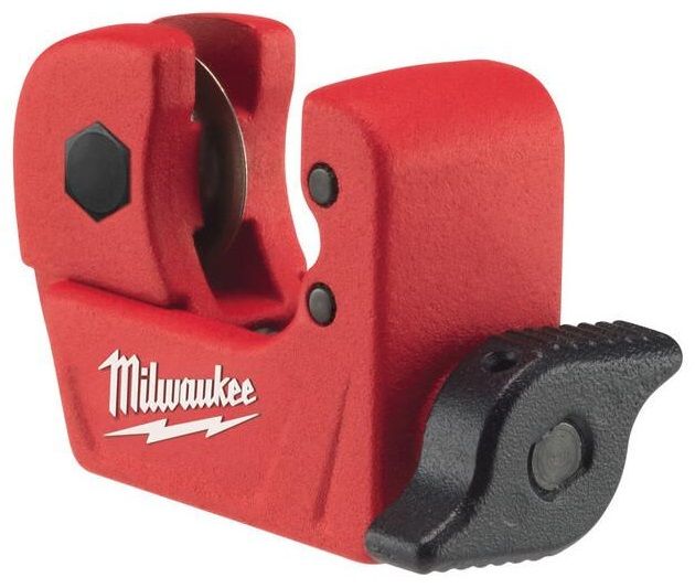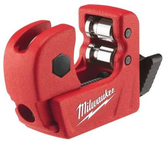Milwaukee 48229250 — компактний ручний труборіз для мідних труб діаметром 3–15 мм, з хромованими роликами зі спеціального сплаву для довговічного використання. Запатентований гвинтовий механізм регулювання забезпечує швидке та точне налаштування без заклинювань, а зручна накатана рукоятка дозволяє контролювати зусилля однією рукою. Металевий корпус вагою 0,14 кг і розмірами приблизно 125×30×110 мм полегшує роботу в тісних просторах, таких як ніші чи шахти. Інструмент створює чистий рівний зріз без деформації стінок, що робить його незамінним для сантехніків та монтажників.