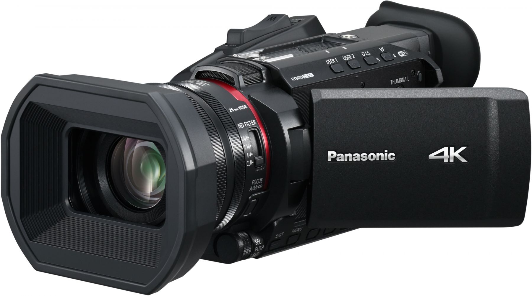 Panasonic HC-X1600 — це універсальна 4K 60p відеокамера, створена для режисерів, контентмейкерів і репортерів. Вона оснащена ширококутним об’єктивом 25 мм із 24-кратним оптичним зумом і системою стабілізації HYBRID O.I.S.+. Завдяки високоточному автофокусуванню, ручному керуванню та підтримці запису 10-бітного відео камера забезпечує стабільне зображення навіть у русі.