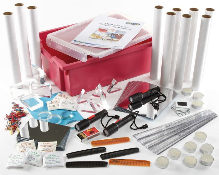 Цей набір об’єднує всі ресурси, які вам знадобляться, щоб навчити дітей принципам розповсюдження світла. Набір містить в собі комплекти призм, факелів, опуклих і увігнутих лінз, дзеркал, світильників та багатьох інших компонентів. До складу входить посібник для вчителя, повний ідей та експериментів зі світлом і тінню, відбиттям світла та багато іншого.