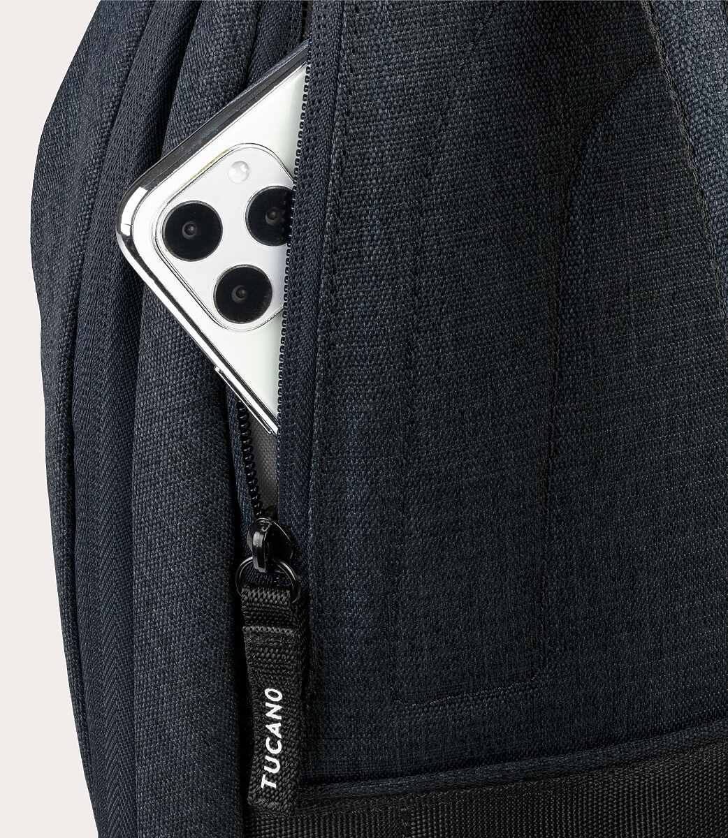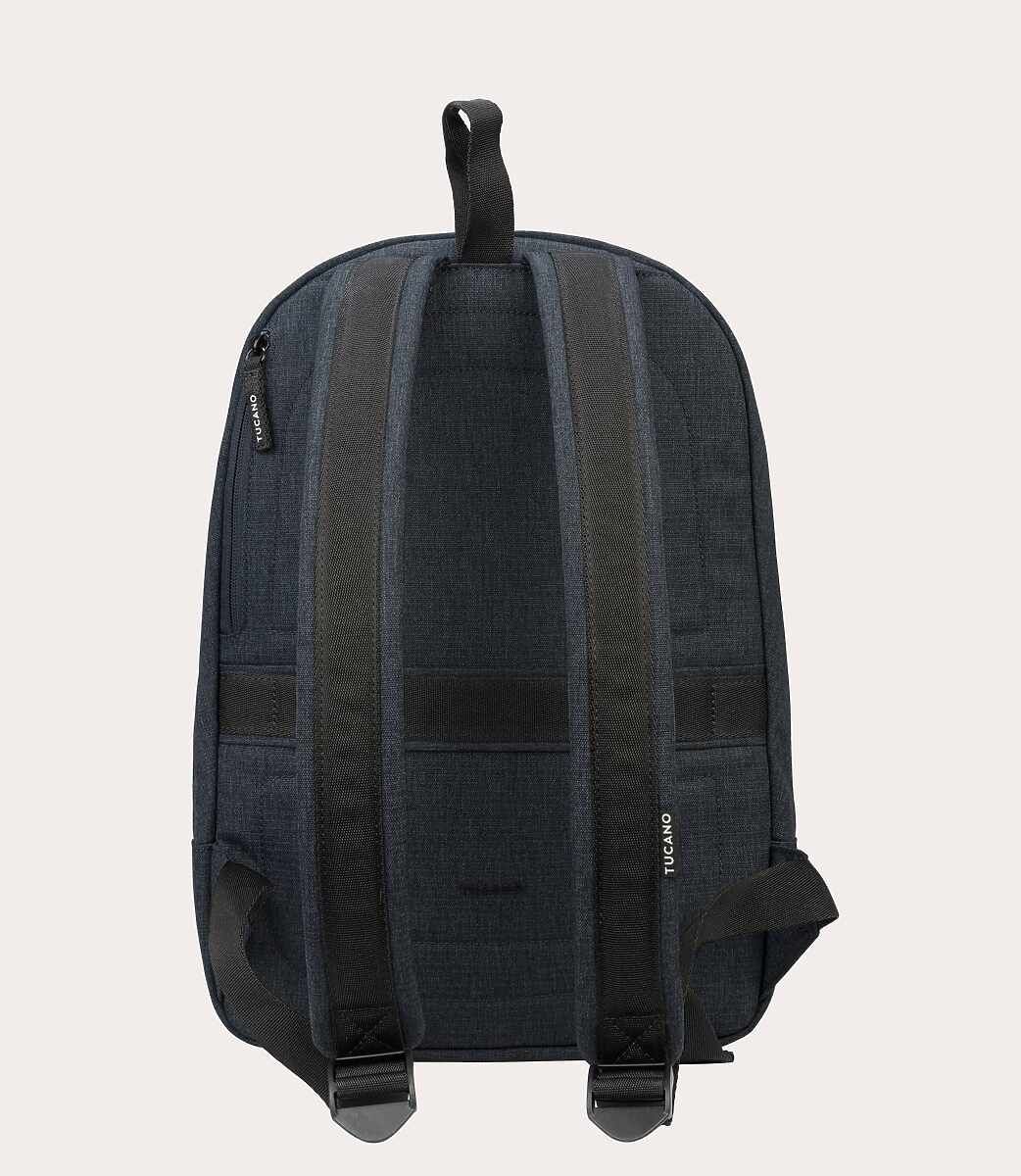 Спортивний рюкзак Tucano Ted 14 для щоденного використання з містким центральним відділенням і окремими кишенями для ноутбука 14 дюймів, і так само для планшета 10 дюймів, і ще однією кишенею для аксесуарів спереду. На спинці є захисна кишеня на блискавки і ремінець для фіксації рюкзака на телескопічною ручці валізи.