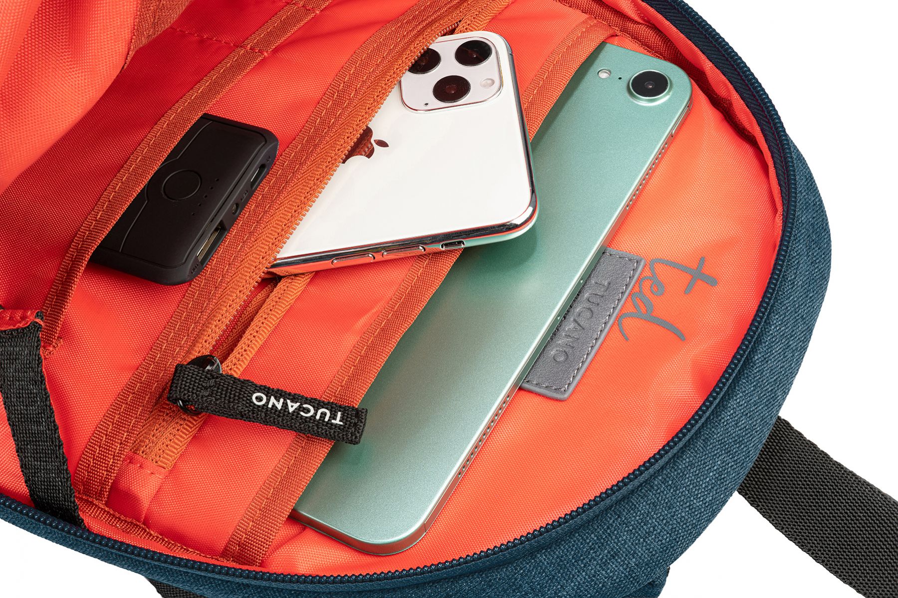 Невеликий спортивний рюкзак Tucano Ted 11 з переробленого пластику (пет пляшки). Оснащений внутрішньою кишенею для планшета і передньою кишенею для аксесуарів. Ззаду є ремінець для фіксації рюкзака на телескопічною ручці валізи.