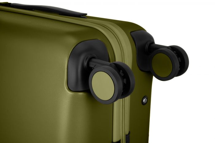 Особливості:подвійні колеса з обертанням на 360 градусів, вертикальна та горизонтальна ручки для перенесення, телескопічна ручка з фіксацією в 4-х положеннях висоти, замок TSA