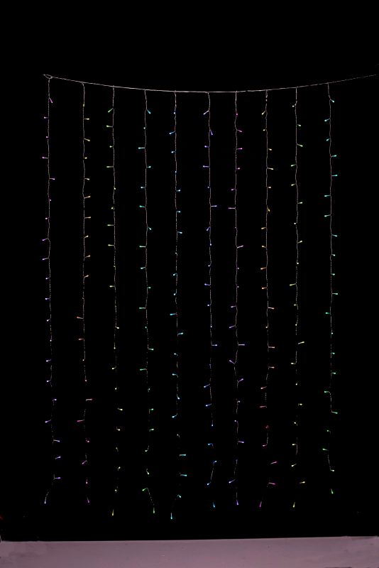 Smart LED Гірлянда Twinkly Curtain RGBW- новітня світлодіодна гірлянда Twinkly. Curtain - своєю назвою вже натякає на можливе застосування у якості імітації штор чи дверей. Але безмежні творчі варіанти застосування це ажніяк не обмежує. Curtain-світло створюється 210-ма RGBW світлодіодами, розташованими по 21шт на 10-ти сегментах довжиною 2,1м. Сегменти розташовано на несучому кабелі через кожні 15см, тож у розтягнутому стані гірлянда накриє площу 1,45м (15см*9) на 2,1м (10см*21)
