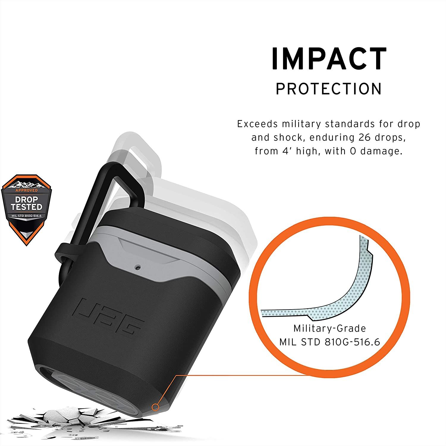Міцна двокомпонентна конструкція з полікарбонату і матеріалу TPU, яка захищає ваші AirPods від ударів, падінь і подряпин. Зручний знімний карабін, що дозволяє легко закріпити ваші AirPods на улюбленому рюкзаку, сумці або ремені.