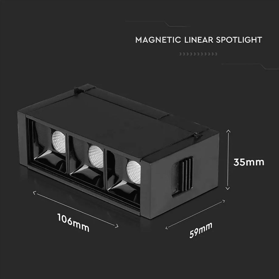 Лінійний трековий світильник LED V-TAC, 3W, SKU-7960, магнітне кріплення, 24V, 3000K, чорний