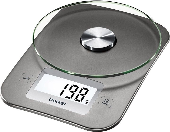 Ваги Beurer кухонні, 5кг, сенс. керування, 3хААА в комплекті, скло, сірий