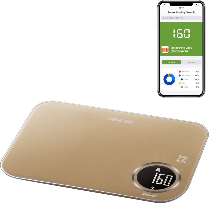 Розумні кухонні ваги Sencor SKS7077CH допоможуть вам вести ідеальний облік споживання калорій та окремих поживних компонентів. Він пов’язаний з найкращою доступною базою даних про продукти харчування, оскільки контрольний додаток Sencor FOOD був розроблений у співпраці з авторами популярного додатку Dine4Fit.