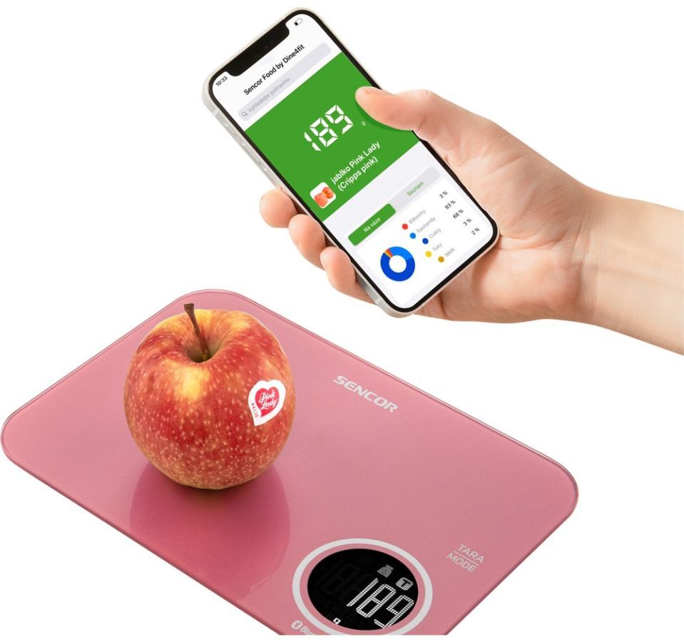 Ваги Sencor кухонні, 5кг, підключення до смартфону, AAAx2, пластик, червоний