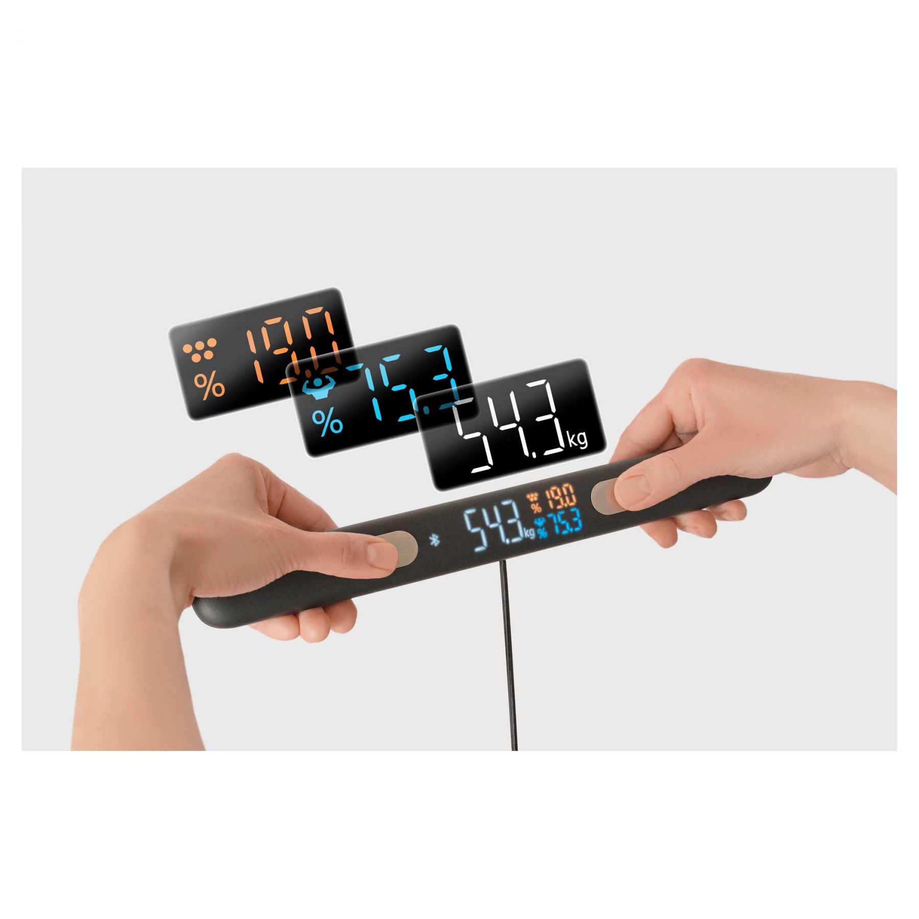 Функції:Розрахунок індексу маси тіла, Вимірювання вмісту води, Визначення частки жирової / кісткової / м'язової тканин, вимірювання щоденної потреби в калоріях