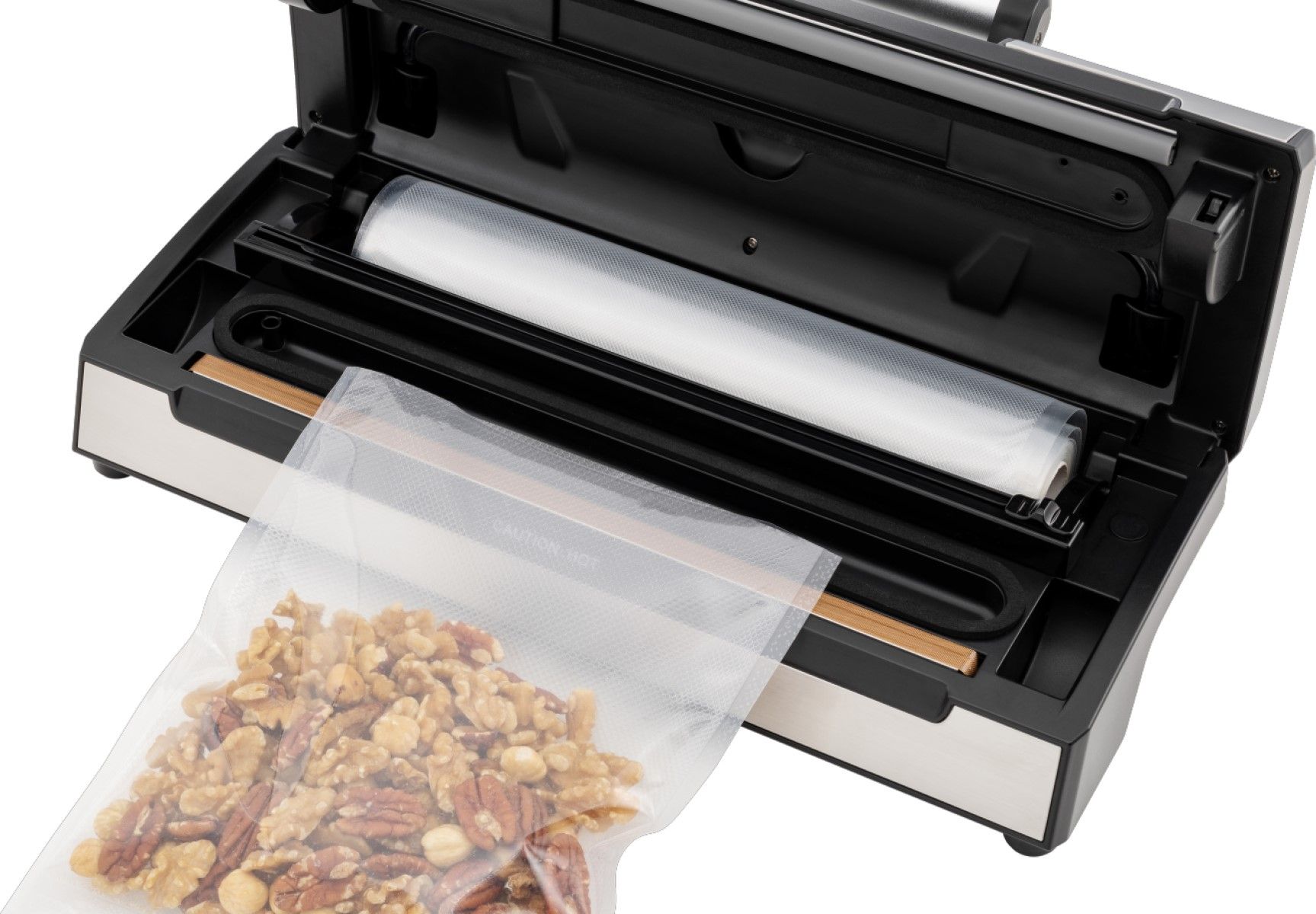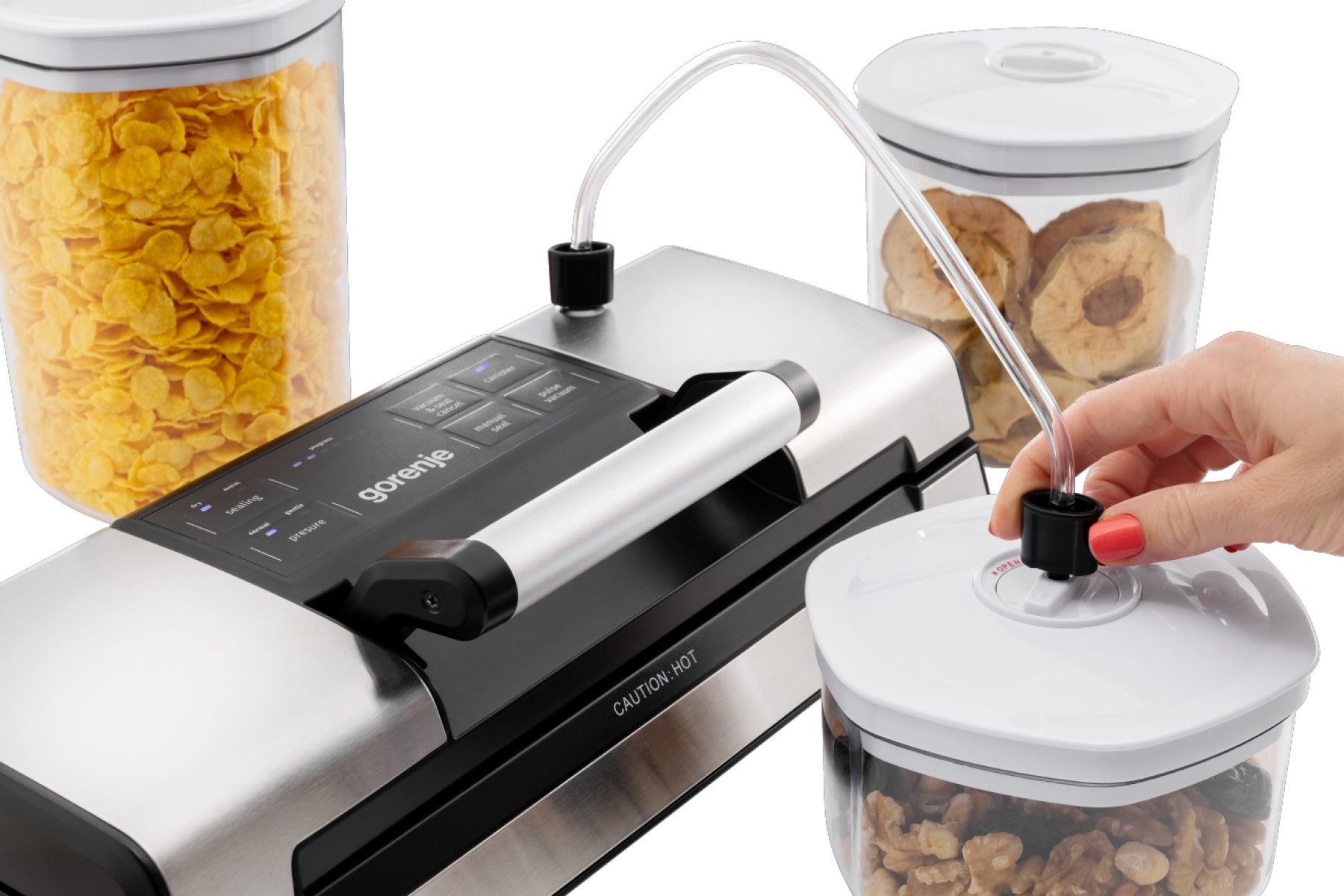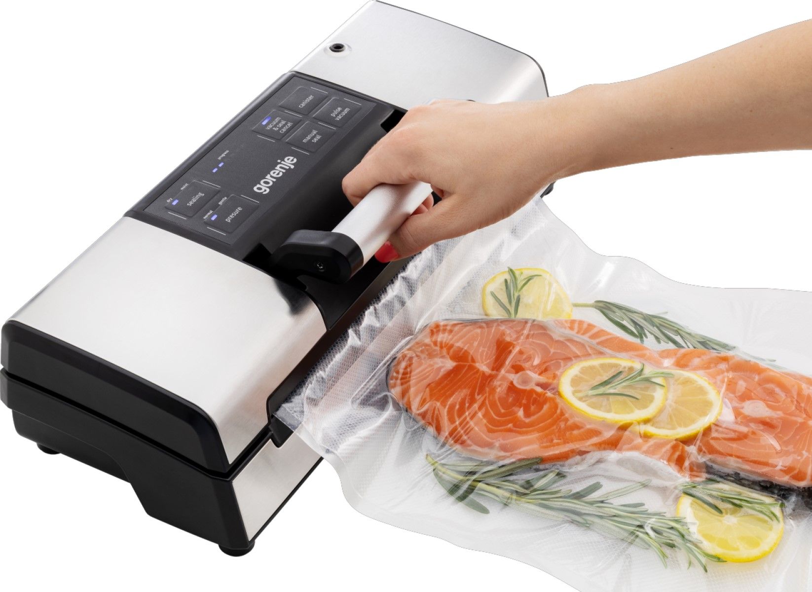 Вакууматор Gorenje VS120EPRO створений для тих, хто хоче зберегти продукти свіжими на тривалий час. Потужність у 120 Вт дозволяє швидко та ефективно вакуумувати різні харчі. З електронною системою керування ви легко налаштуєте процес вакуумування, а довжина поверхні запаювання у 30 см дає можливість використовувати пакети різних розмірів. Пристрій виконаний з нержавіючої сталі та чорного пластику, що гарантує довговічність і стильний зовнішній вигляд. У комплекті також є 10 пакетів для зручного початку користування.