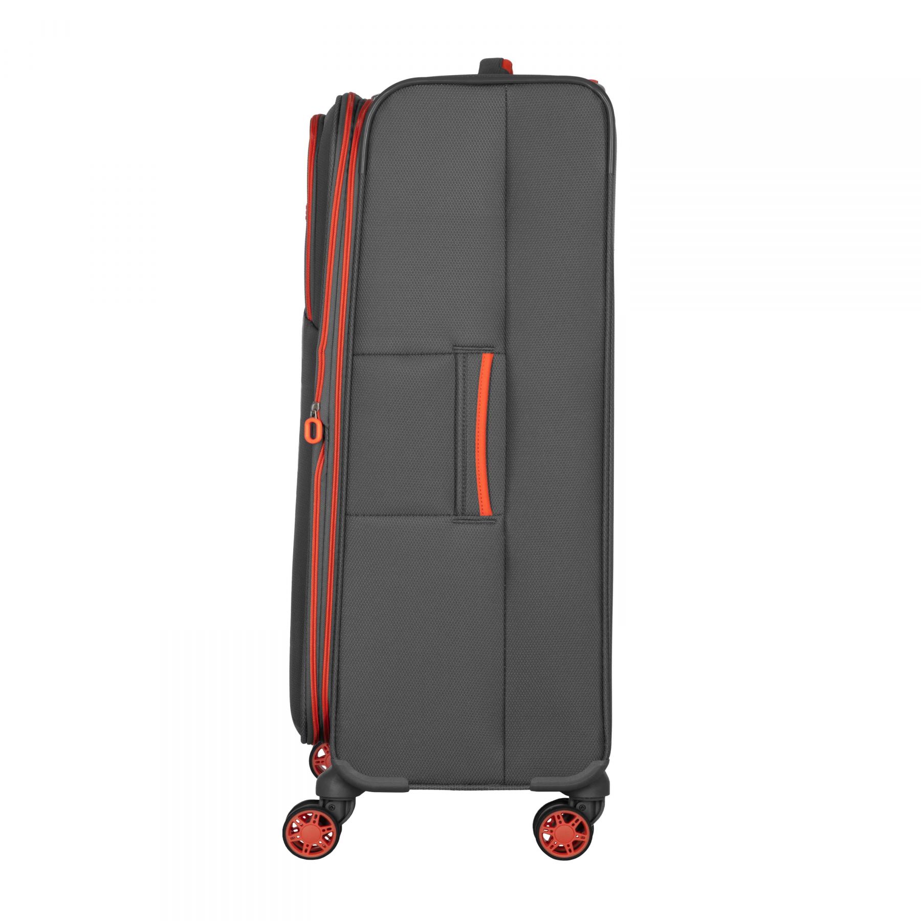Дорожня валіза 2E розміру M поєднує легкість, міцність і продуманий дизайн для комфортних подорожей. Жорсткий полегшений каркас вкрито зносостійкою поліестеровою тканиною із фактурним плетінням, що забезпечує привабливий вигляд і стійкість до пошкодження. Усередині є еластичні пакувальні ремені для надійної фіксації речей і додаткова кишеня на блискавці для дрібниць. Завдяки особливостям конструкції об’єм валізи можна збільшити із 64 до 78 л, що особливо зручно під час тривалих мандрівок.