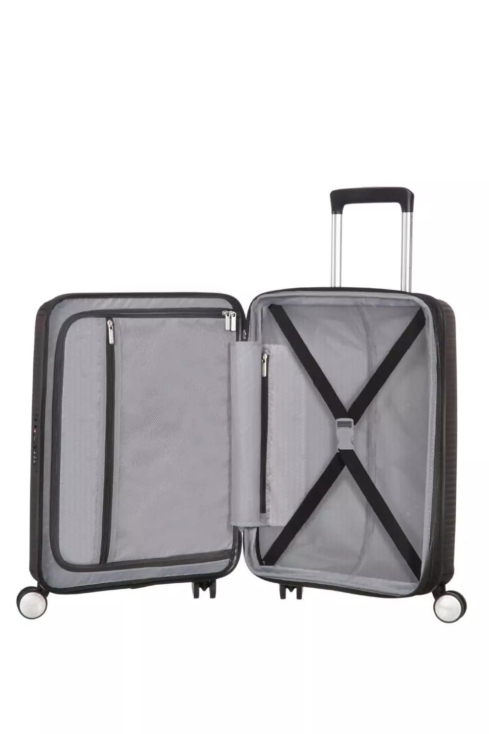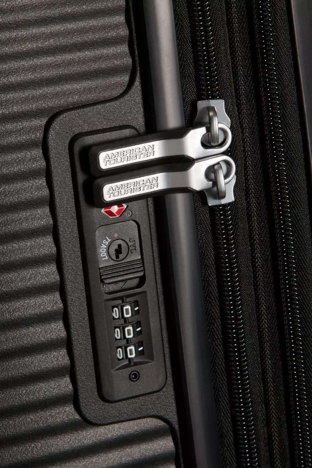 Валіза American Tourister Soundbox S — компактна модель із поліпропіленовим корпусом для поїздок і авіаперельотів. Жорстка конструкція поєднує малу вагу та стійкість до дорожніх навантажень. Розширення на блискавці збільшує корисний об’єм із 35,5 до 41 л. Чотири подвійні колеса та телескопічна ручка спрощують переміщення. Вбудований TSA-замок придатний для міжнародних маршрутів.