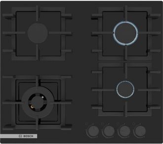 Варильна поверхня Bosch газова на склі, 60см, чавун, чорний