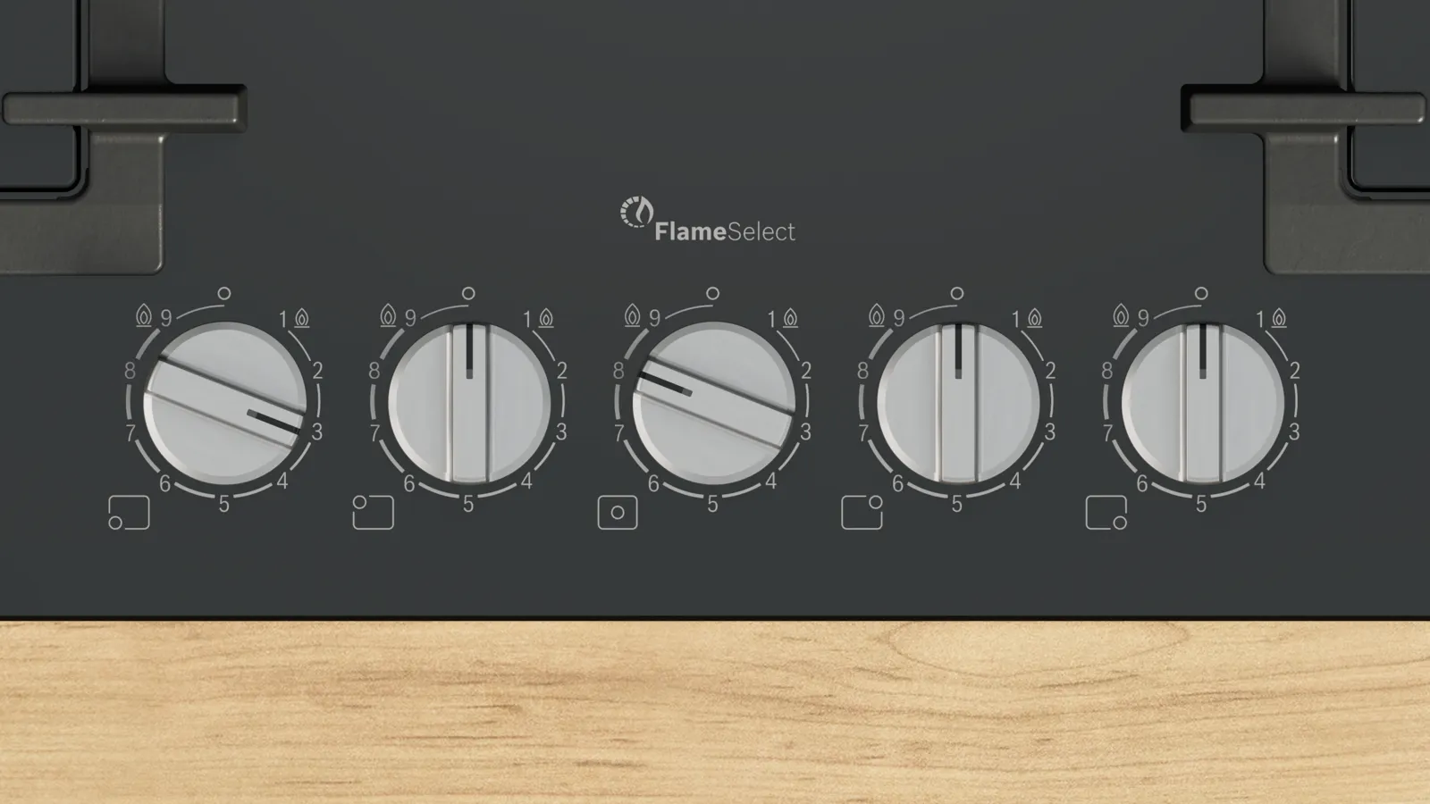 Особливості:технологія FlameSelect, автоматичне електрозапалювання, мінімальна товщина робочої поверхні: 20 мм, чавунні решітки придатні для миття в посудомийній машині